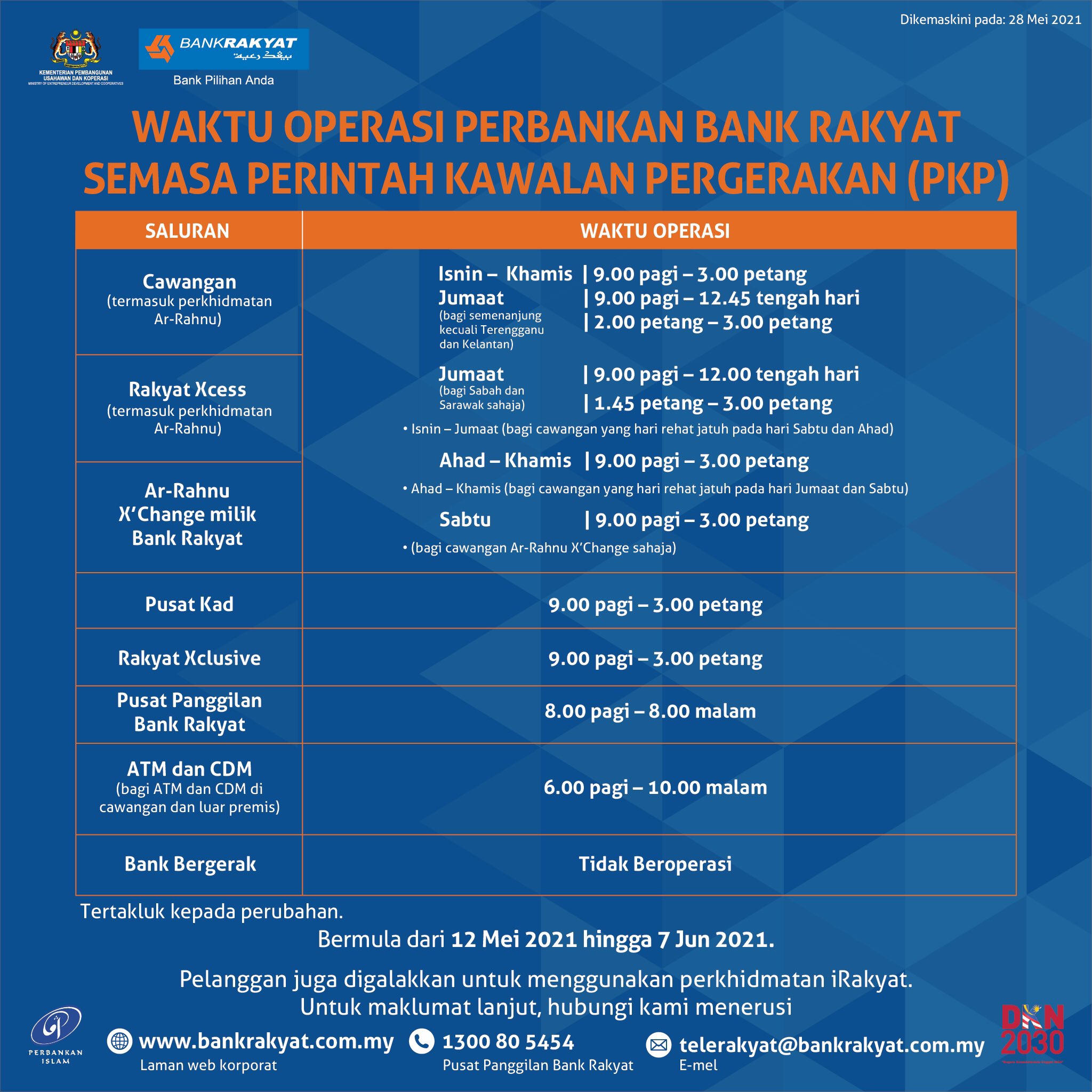 Bank Rakyat Sebagai Rujukan Berikut Adalah Waktu Operasi Kemudahan Perbankan Bankrakyat Mohon Kerjasama Seluruh Rakyat Malaysia Mengawal Pergerakan Anda Bagi Mengelak Penyebaran Covid19 Yourbankofchoice Bankrakyat25 Medacmalaysia Dkn2030