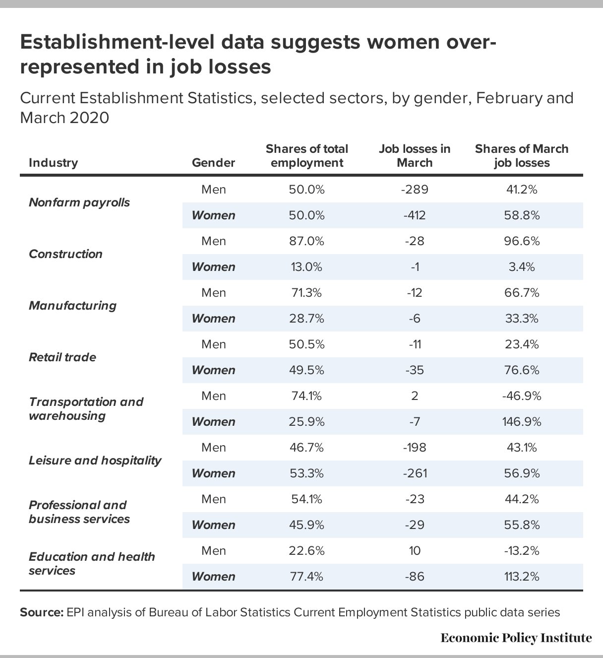 Elise Gould On Twitter Women Were Over Represented In Job Losses Experienced In Retail Trade Women Had About 50 Of Retail Jobs In February But Experienced Three Quarters Of The Job Losses In March